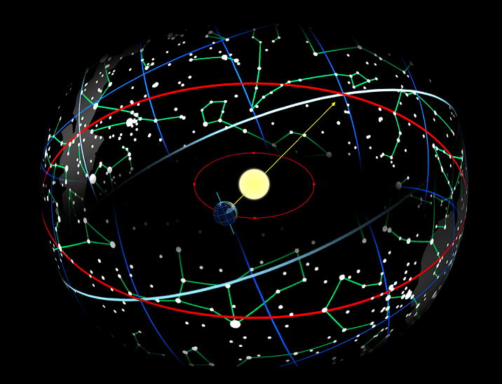ecliptic, that is, the narrow path on the sky where our sun, Moon